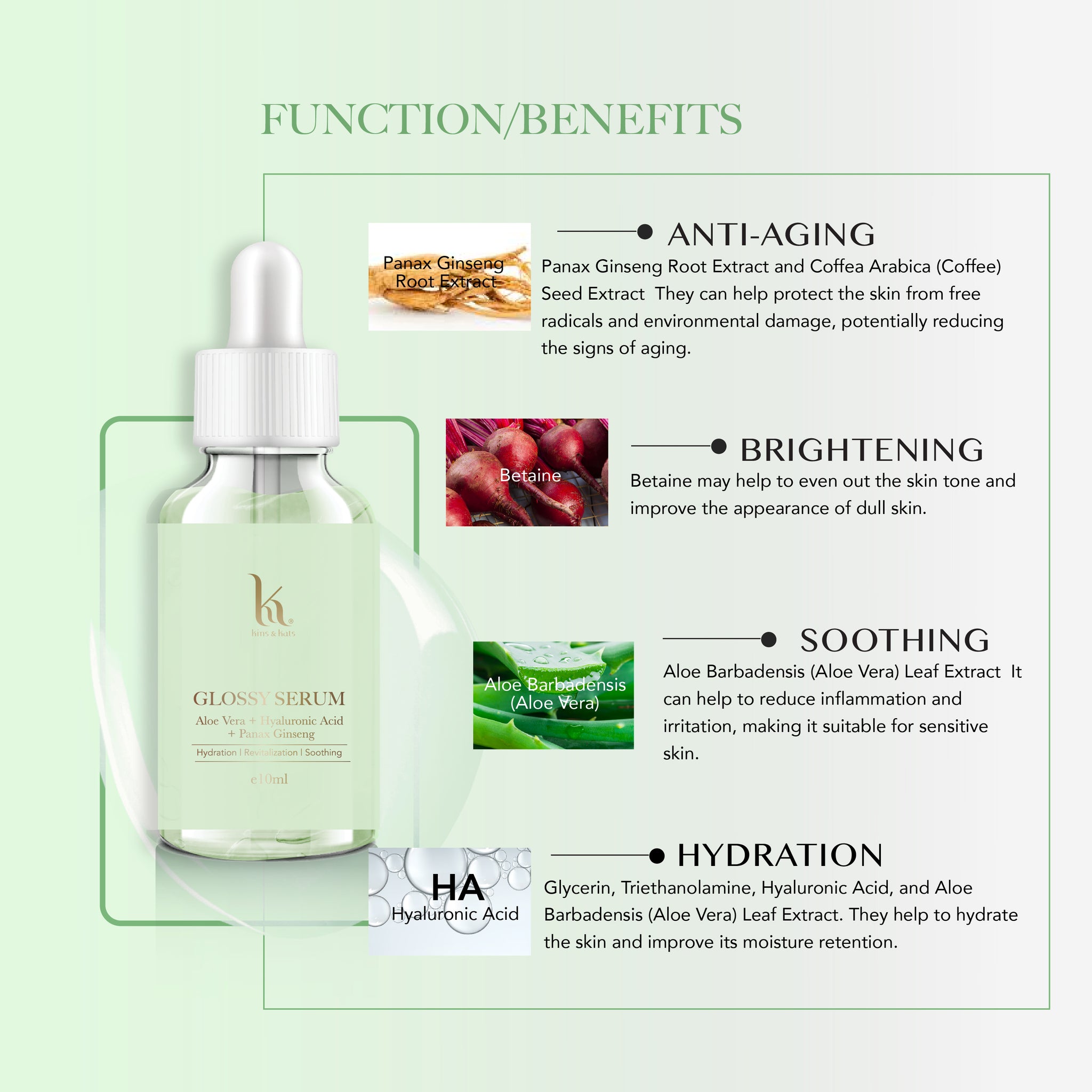 KNK GS is a antioxidant serum with combination of Aloe Vera extract and Hyaluronic acid. which makes it gentle on the skin also moisturise your skin.